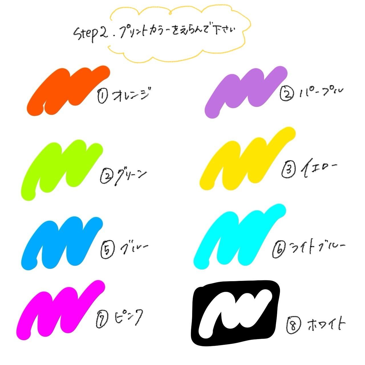 Step2:プリントカラーを①〜⑧から1つえらぶ